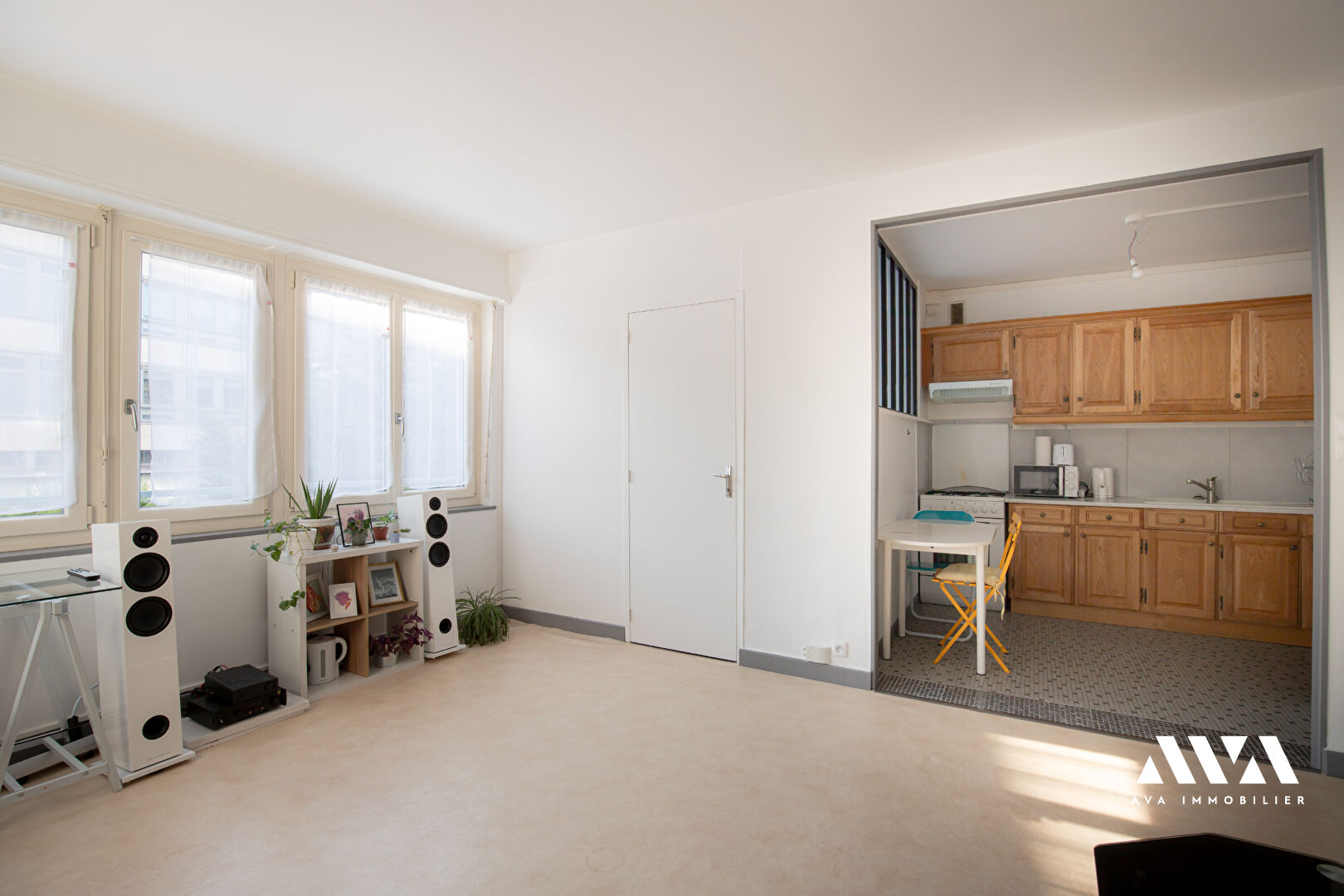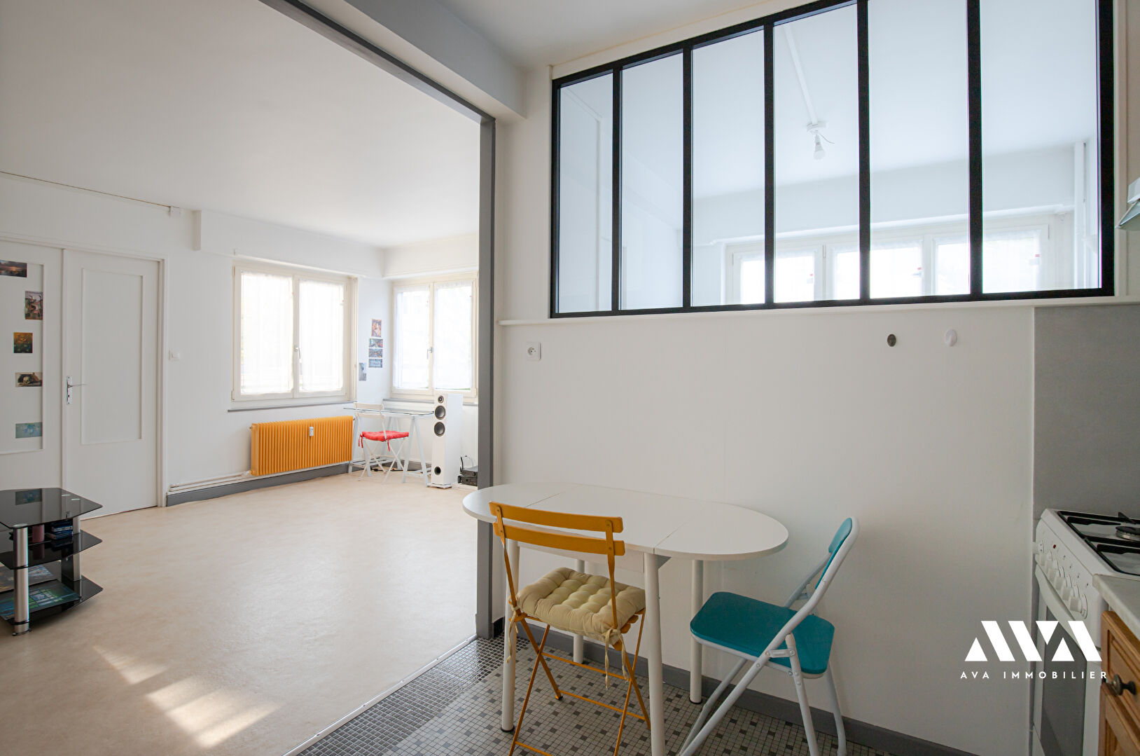 Cet appartement de 53m2 carrez offre une entrée, une salle d'eau, une cuisiné équipée ouverte sur un vaste salon-séjour, deux chambres, un WC.