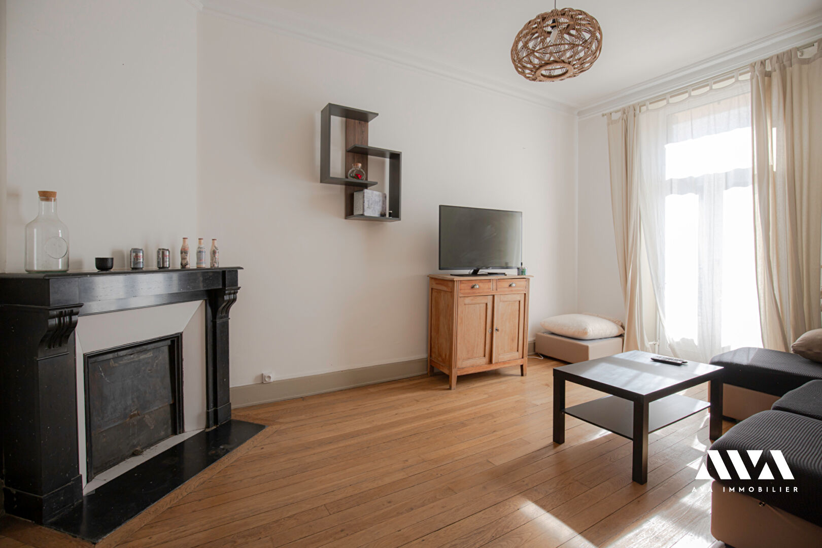Il se compose d'une entrée sur dégagement, un salon, un séjour, une cuisine équipée, deux chambres, une salle de bains, un wc séparé, un balconnet et deux caves.