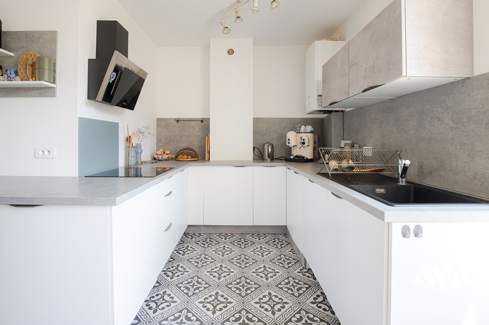 Ici, l'espace cuisine rénové récemment est une vraie valeur ajoutée à l'appartement grâce à l'espace de travail et aux rangements qu'elle offre.