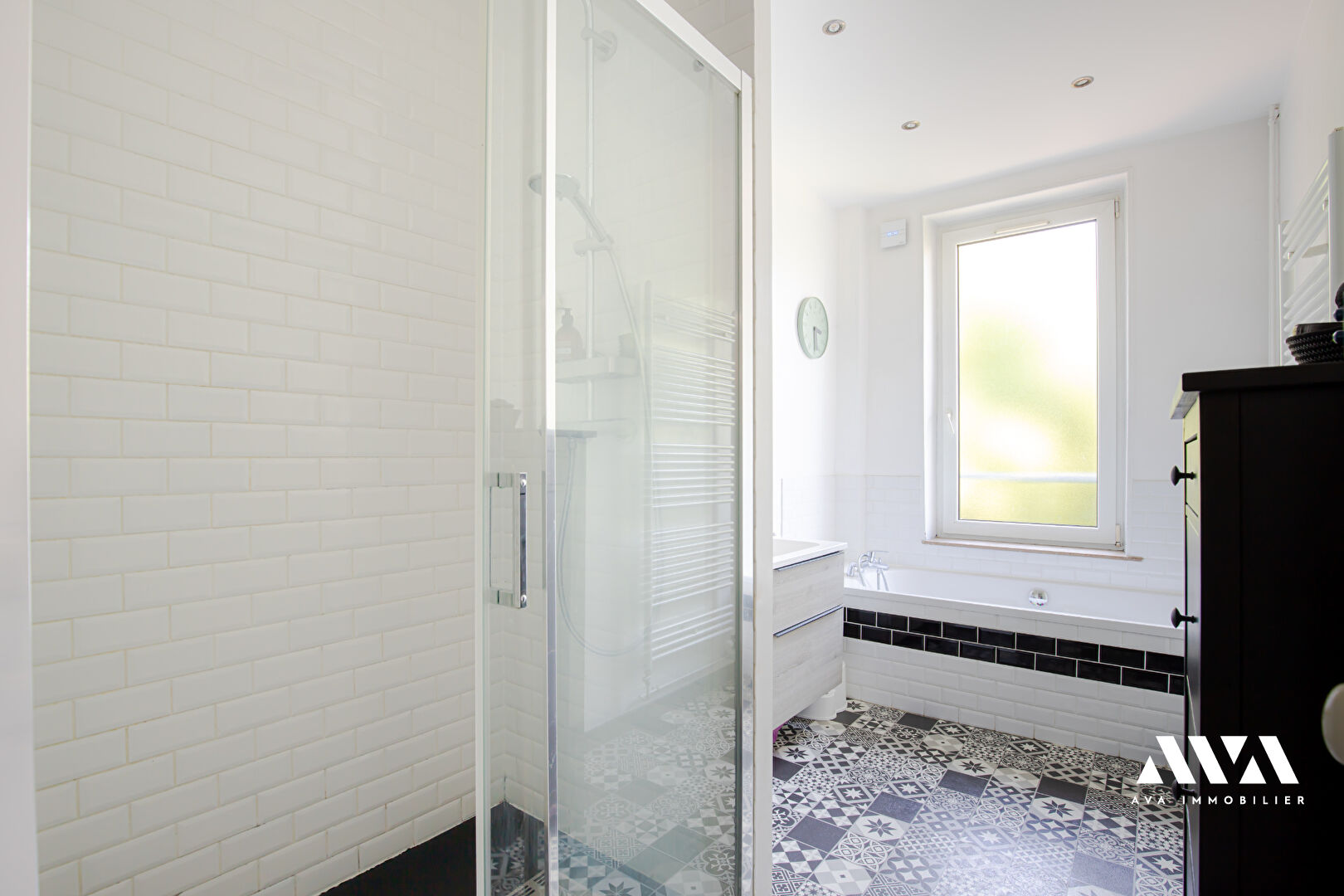 Au 1er étage : 3 chambres spacieuses, une salle de bains avec douche et baignoire et un wc.