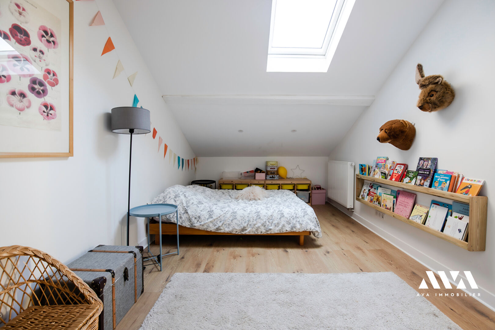 A l'étage : deux chambres, un dressing et une salle de bains avec baignoire et douche.