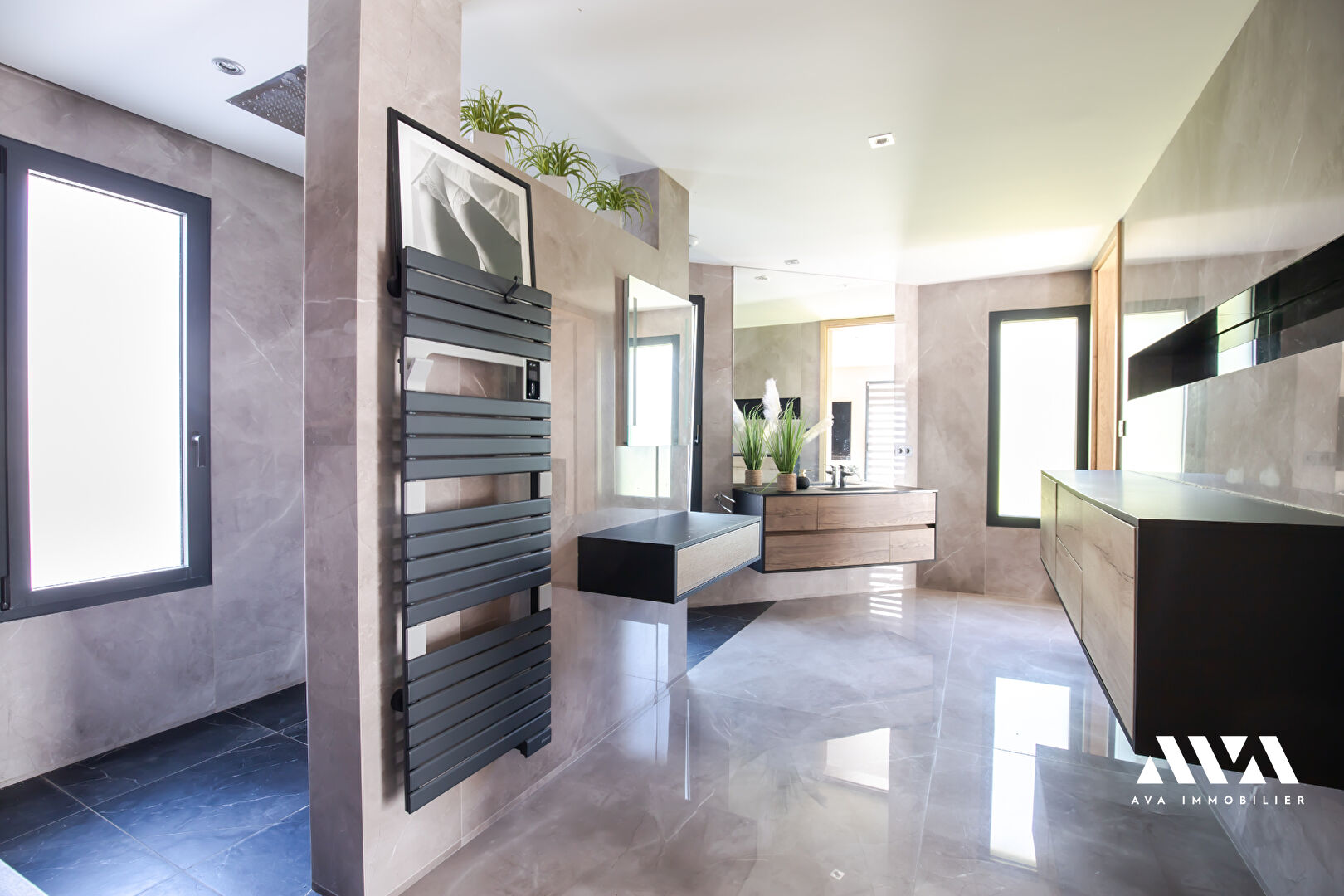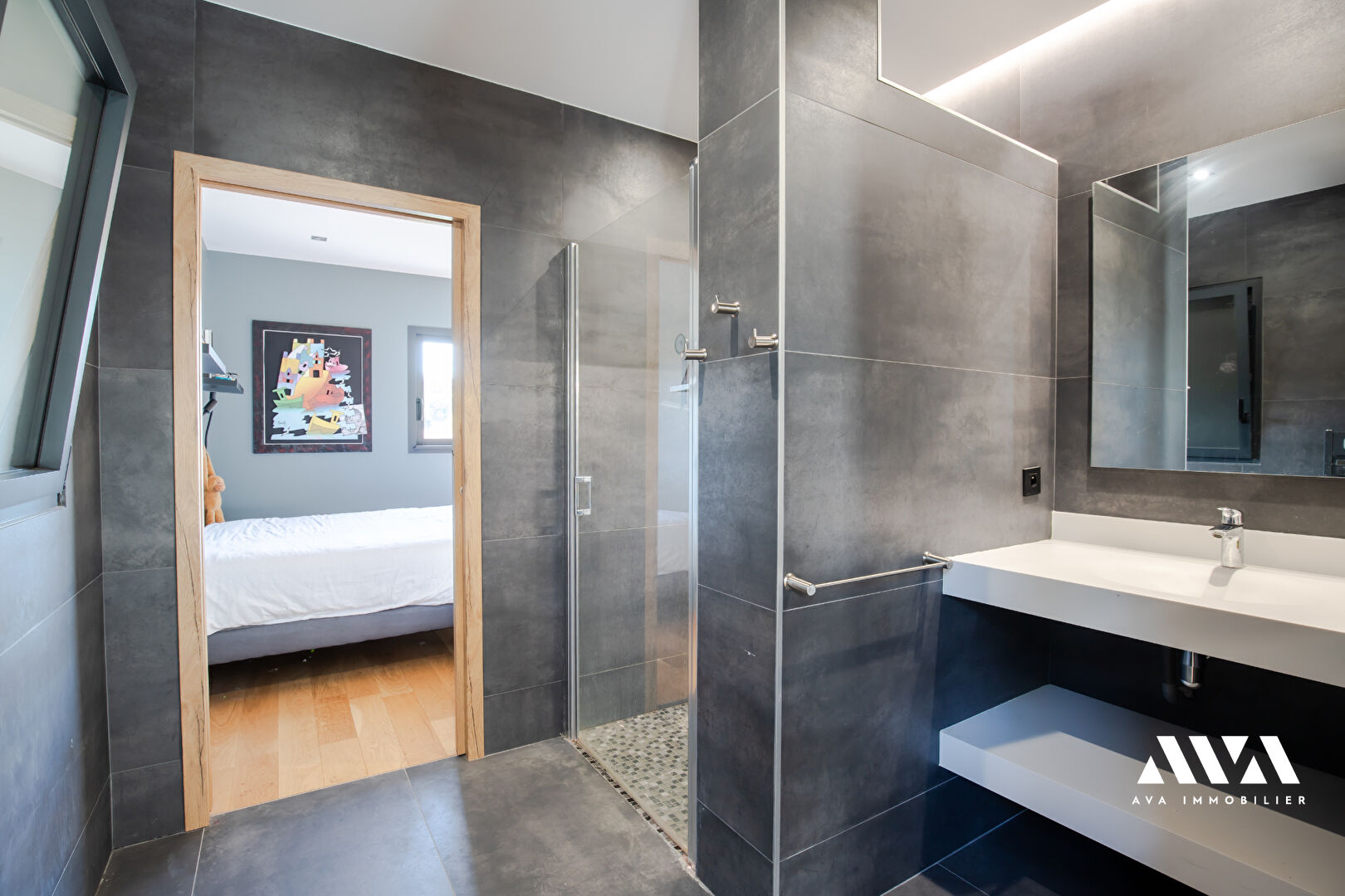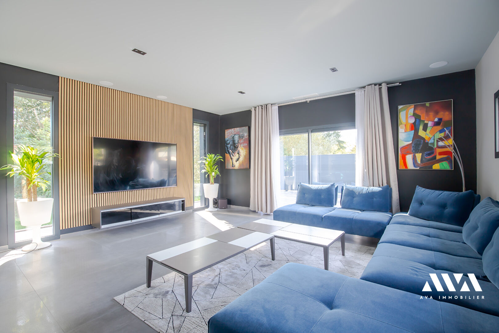 Edifiée en 2023 sur une parcelle de 1289m2, cette villa d'inspiration californienne déploie 415m2 de surfaces aux prestations haut de gamme.